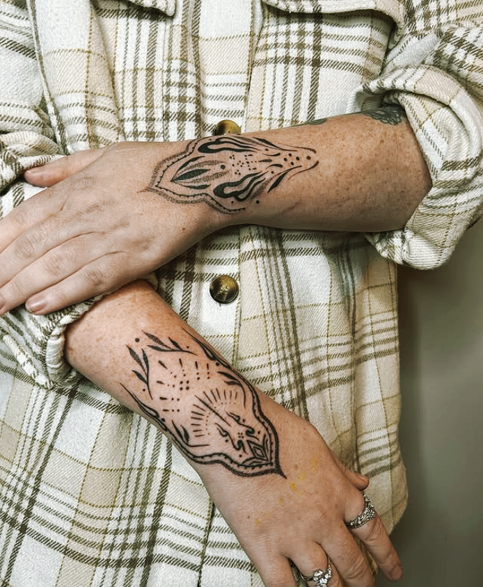 J’aime prendre le temps de comprendre vos projets de tatouage, leur histoire et leur esthétique, afin de leur donner vie sur vos corps et vos courbes, pour qu’ils vous accompagnent tout au long de votre vie.