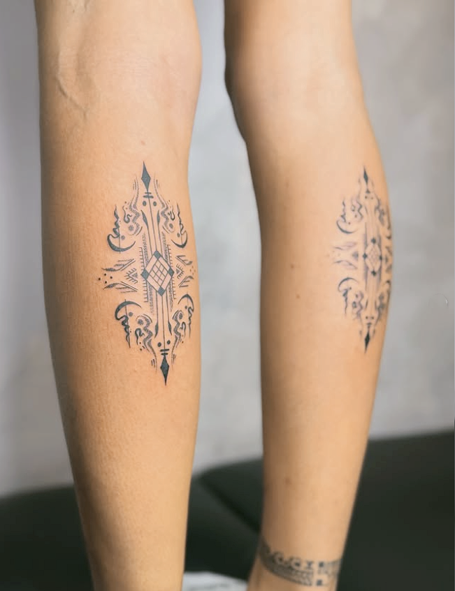 Mon travail s’inspire des motifs ethniques et ornementaux, mêlant le dotwork délicat à des noirs profonds et contrastés.